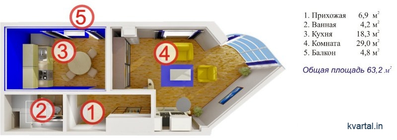 Квартира "Ущелье Трех гор". 1-комнатная квартира в Ялте.