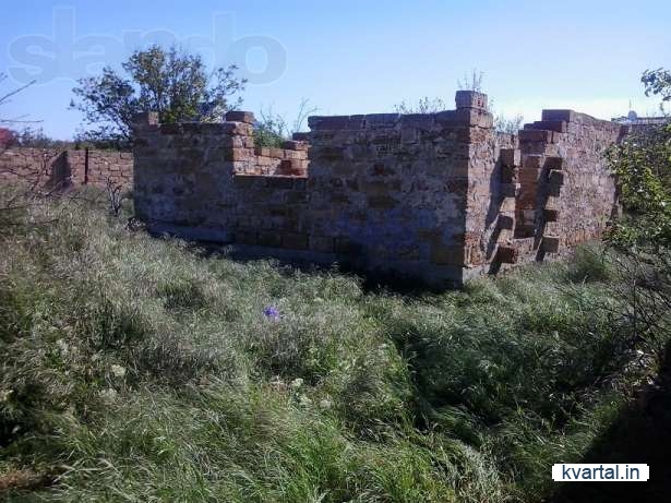 Участок  с незавершенным домом на Песчанке(Заозерное,  5 км от Евпатории) ,  огорожен кирп.  забором,  в жилой зоне.  Газ проведен,  вода и элект